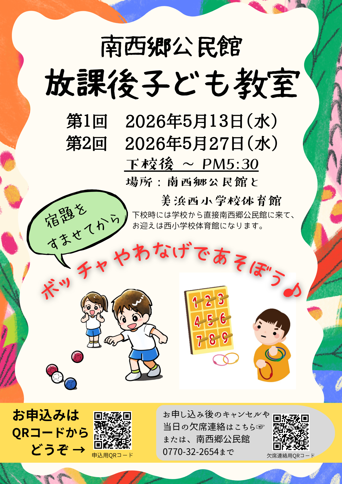 西小学校児童 美浜町南西郷公民館 0770-32-2654
